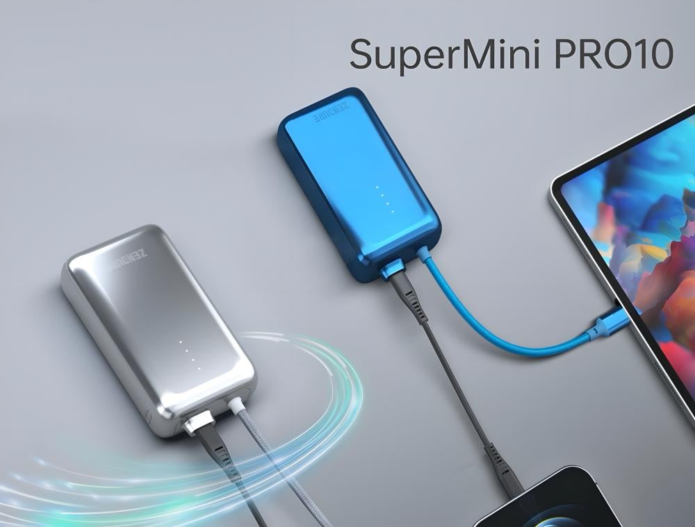 سوبر ميني برو – رماديباور بانك خارجي 10,000 مللي أمبير مع كيبل مدمج